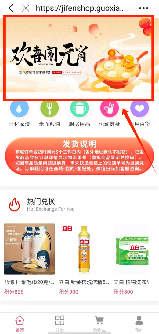 2. 点击“首页”-“积分商城”进入
